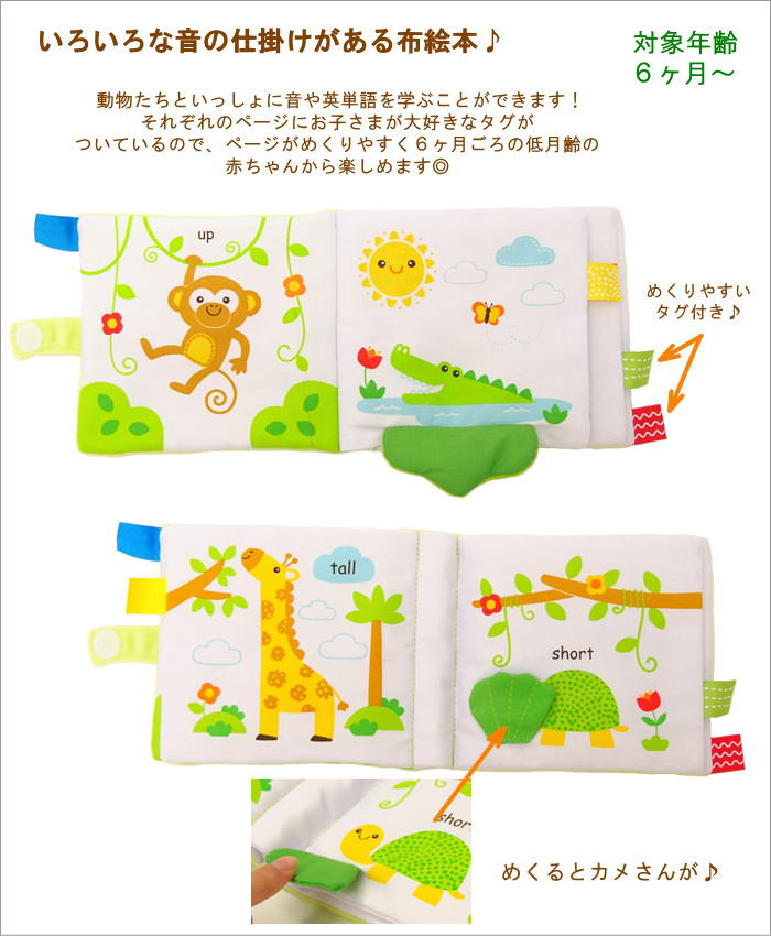 【ジャングルファン】813027 布絵本 布おもちゃ キッズ ベビー 知育玩具 どうぶつ 英語 仕掛け絵本 音の出るおもちゃ ファーストトイ やわらか 動物 かわいい おしゃれ プレゼント 出産祝い 赤ちゃん 男の子 女の子 エドインター