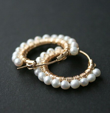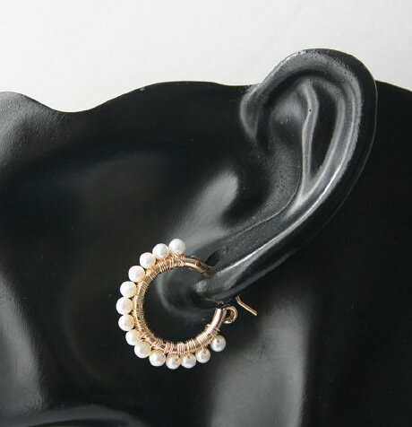 【再入荷】パールのフープピアス(M)14KGF/天然石アクセサリー・ゴールドフィルドジュエリー・淡水真珠