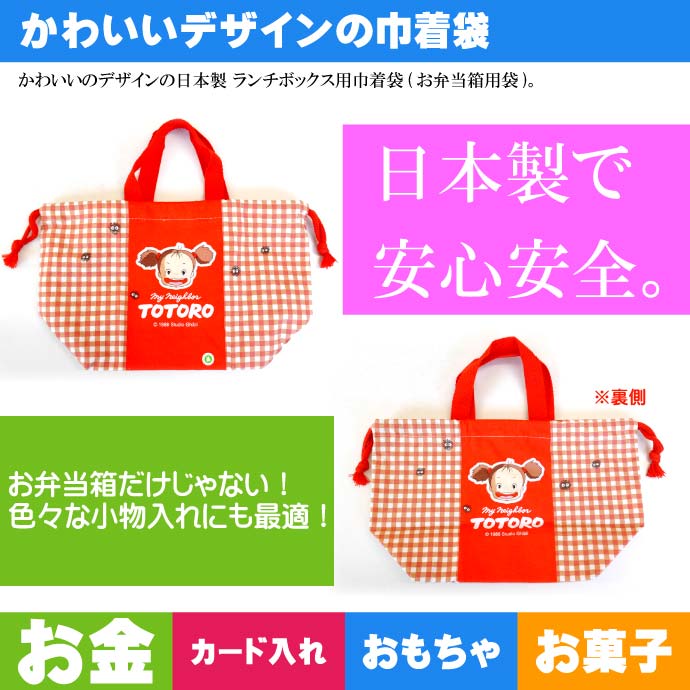 商品名 ランチボックス入れ 巾着袋 弁当箱入れ袋 SKATER(スケーター)キャラクターグッズ 入園 入学 グッズ 用品 給食セット 4973307398926 KB7 商品説明 スタジオジブリ となりのととろ めいちゃん のデザインの 日本製 ランチボックス用巾着袋(お弁当箱用袋)。