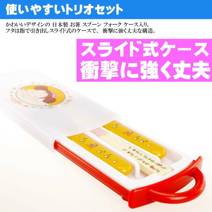 ●仕様 材質:フタ-AS樹脂 本体-ABS樹脂 中皿-ポリプロピレン ハシ-AS樹脂 スプーン・フォーク-ステンレス鋼(持ち手-ABS樹脂) サイズ:お箸(ハシ)全長約16.5cm スプーン・フォーク 全長約13cm ケース約206×82×17(mm) ●セット内容 お箸×1膳 スプーン×1 フォーク×1 ケース×1商品名 となりのトトロ めい お箸 スプーン フォーク スライド式ケース付 SKATER(スケーター)キャラクターグッズ 入園 入学 グッズ 用品 給食セット 4973307398971 TCS1AM 商品説明 スタジオジブリ ととろ メイ のデザインの 日本製 お箸 スプーン フォーク ケース入り(トリオセット)。