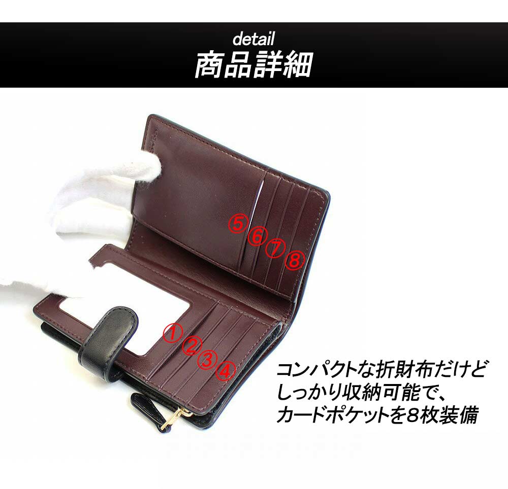 コンパクトな2つ折りシルエットに多様なポケット付きで、実用的にお使い頂けます。